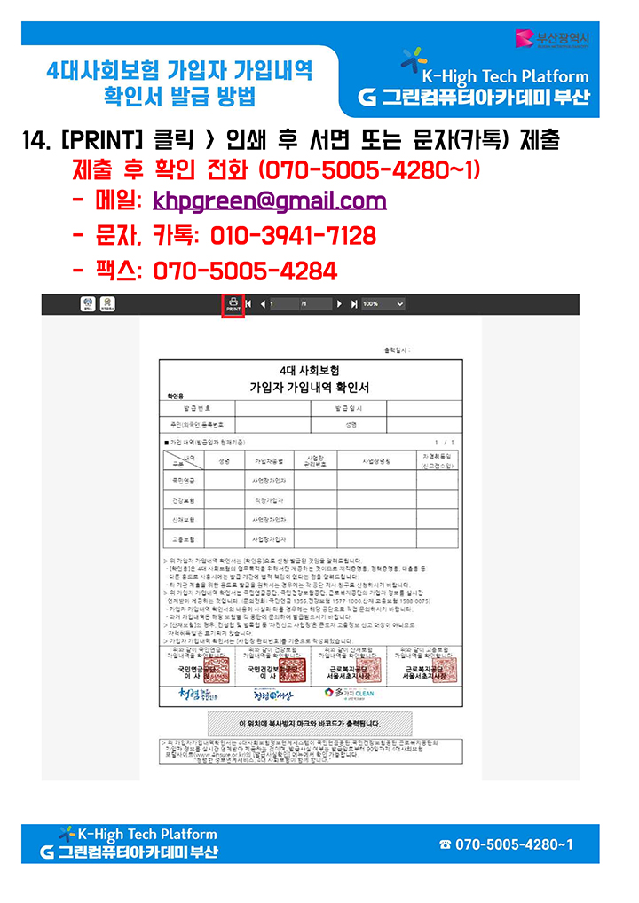 ※발급 후 제출 > 제출 후 확인전화 (070-5005-4280~1) -FAX: 070-5005-4284 -문자(카카오톡): 010-3941-7128 -메일: khpgreen@gmail.com