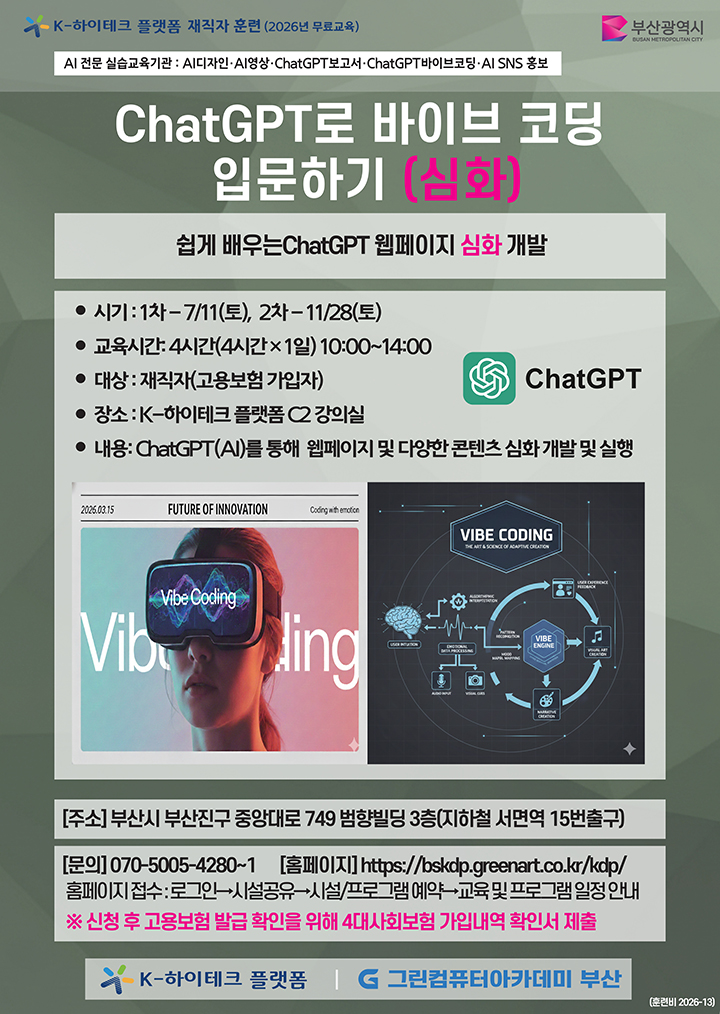 ※출석인정을 위해 고용24 출결관리 어플 설치 필요 설치방법:https://bskdp.greenart.co.kr/kdp/kdp_noticeview.html?no=142 부산시 재직자 무료교육 / 부산시 재직자 무료수업 / 부산 재직자 무료교육 / 부산 재직자 무료수업 / 부산 AI 무료 수업 / 부산 AI 무료 교육 / 미드저니 무료 교육 / 미드저니 무료 사용법 / 미드저니 AI 사용법 / Midjourney ai 사용법 / Midjourney 무료 사용법 / 캡컷 무료 교육 / 캡컷 무료 사용법 / 캡컷 ai 사용법 / Capcut 무료 교육 / Capcut 사용법 / 영상편집 / 영상제작 / ai 영상제작 / ai 영상편집 / 피그마 무료 교육 / figma 무료 교육 / figma 사용법 / chatgpt / 챗지피티 사용법 / 챗지피티 무료교육 / 프리미어 / 프리미어 사용법 / 상품 페이지 / 템플릿 / 상세페이지 / 포스터 / 보고서 작성 / 바이브코딩 / 10배 빠르게 / 프레젠테이션 제작/ gemini / grok / sns마케팅 / ideogram / 인스타 / 트위터 / x /페이스북 |